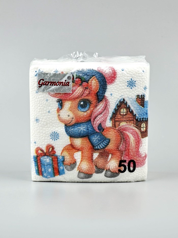Салфетки бумажные «Лошадка с подарками», 24*24см 50л