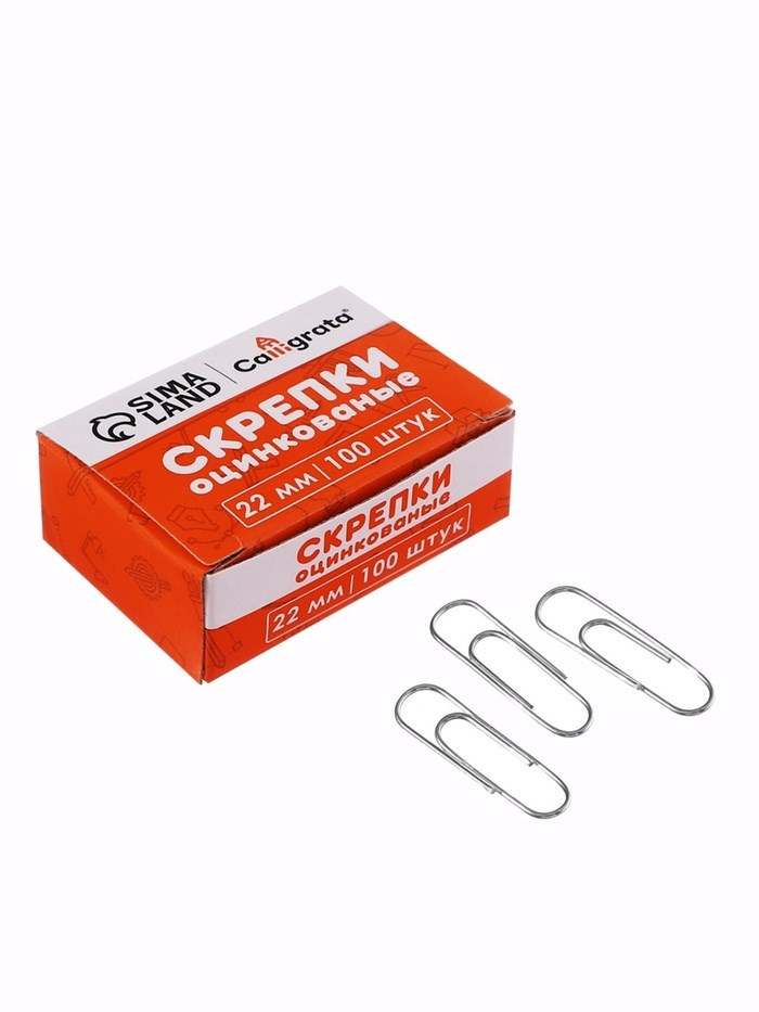 Скрепки 22мм оцинкованные в картонной коробке 100шт