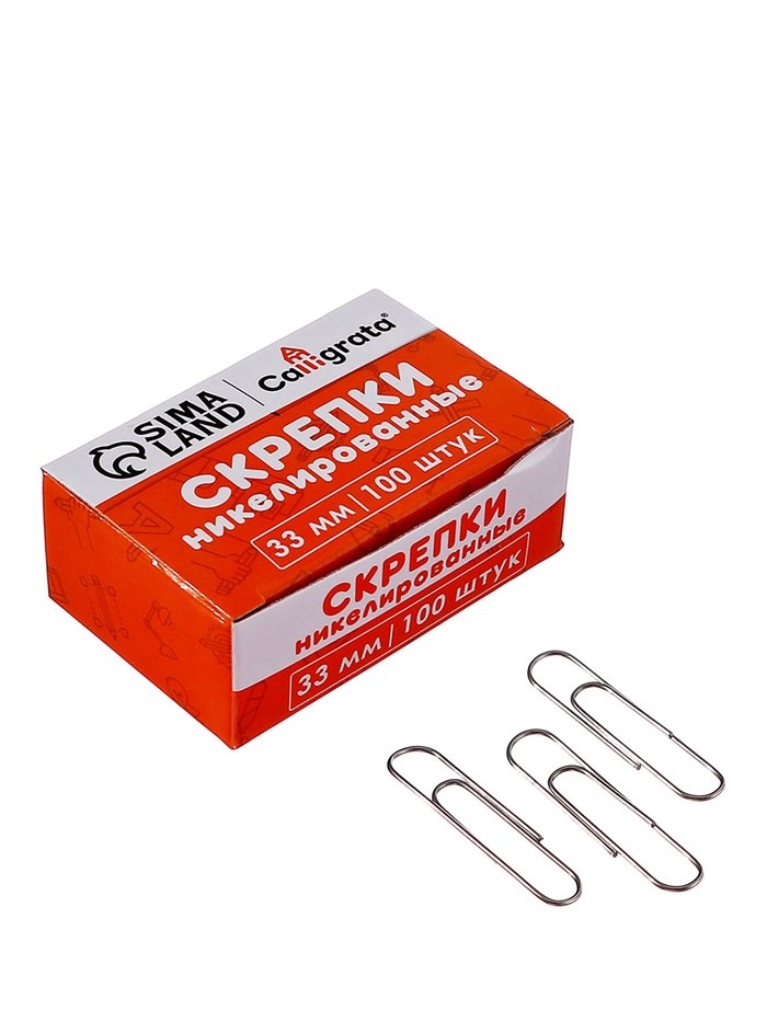 Скрепки 33мм никелированные в картонной коробке 100шт
