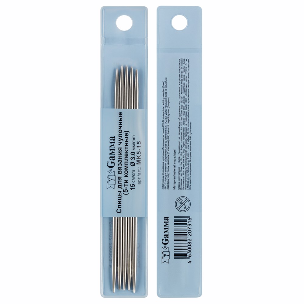 Спицы 5-ти компл. чулочные MK5-15 сталь d3.0мм 15см 5шт