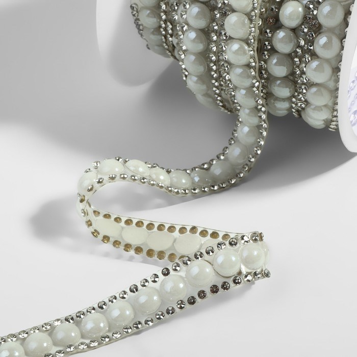 Стразы и бусины термоклеевые, ширина 11мм, 1м, цв серебряный