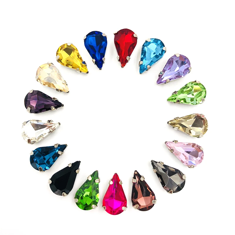 Стразы в цапах пришивные Капля 8*13мм н-р 6шт, цв. красный