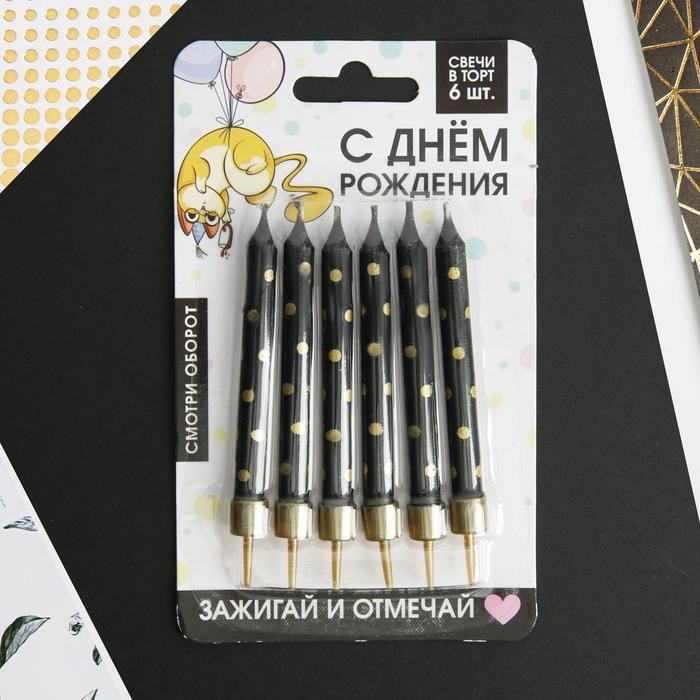 Свечи д/торта «С днем рождения», 6шт, 9*0,8см