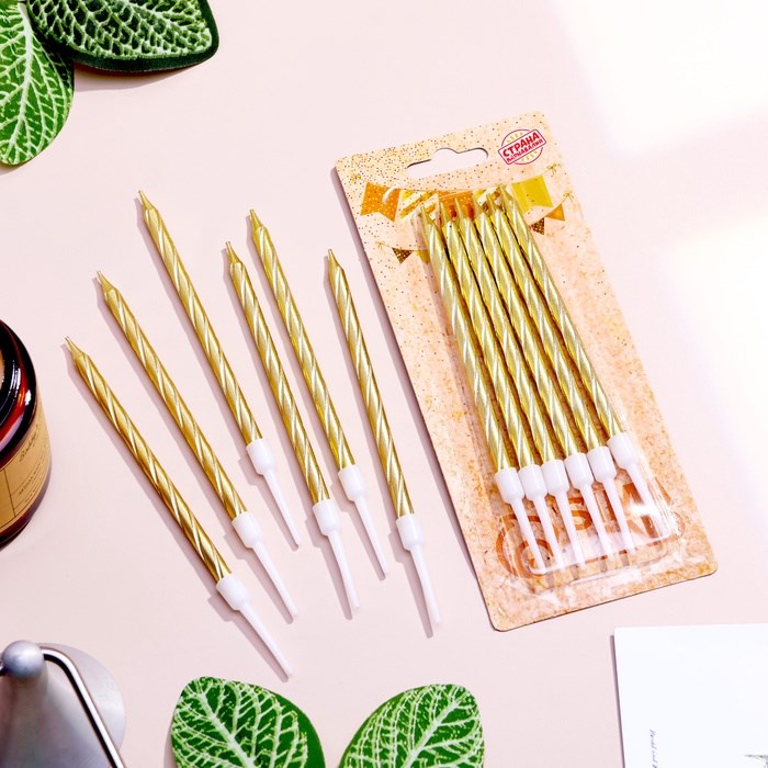 Свечи в торт «Металлик» , 14см, 6шт с подставкой, золотые
