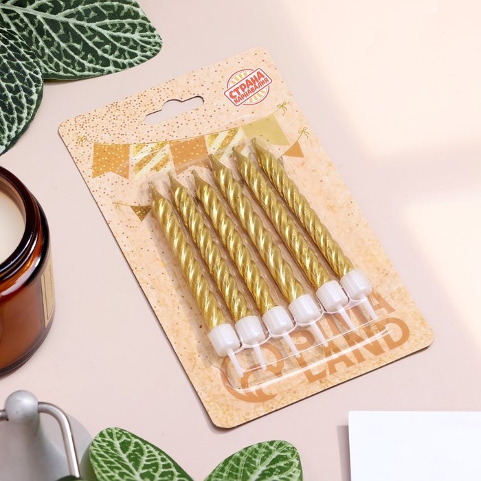 Свечи в торт с подставками, золотые, 6шт, 8см