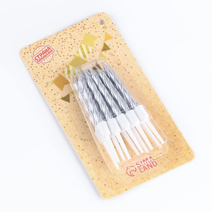 Свечи в торт «Спираль», 10шт, средние, 5см, металлик