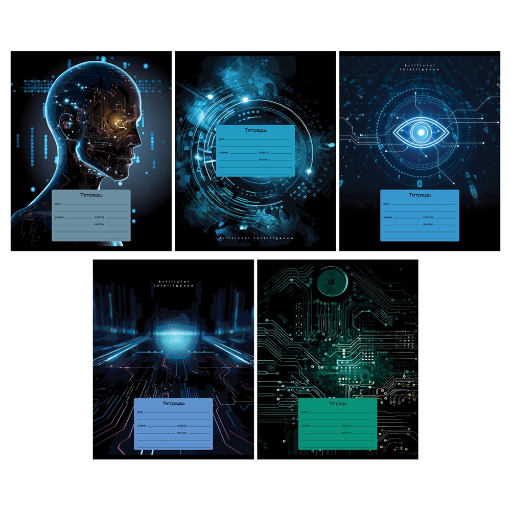 Тетрадь 12л в клетку, BG "Искусственный интеллект"