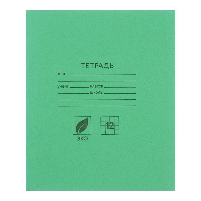 Тетрадь 12л в клетку «Зелёная обложка», плотность 60г/м², белизна 92%