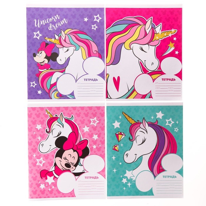 Тетрадь в линейку 12л, обложка мелованный картон, «Минни Маус и единорог» 1шт