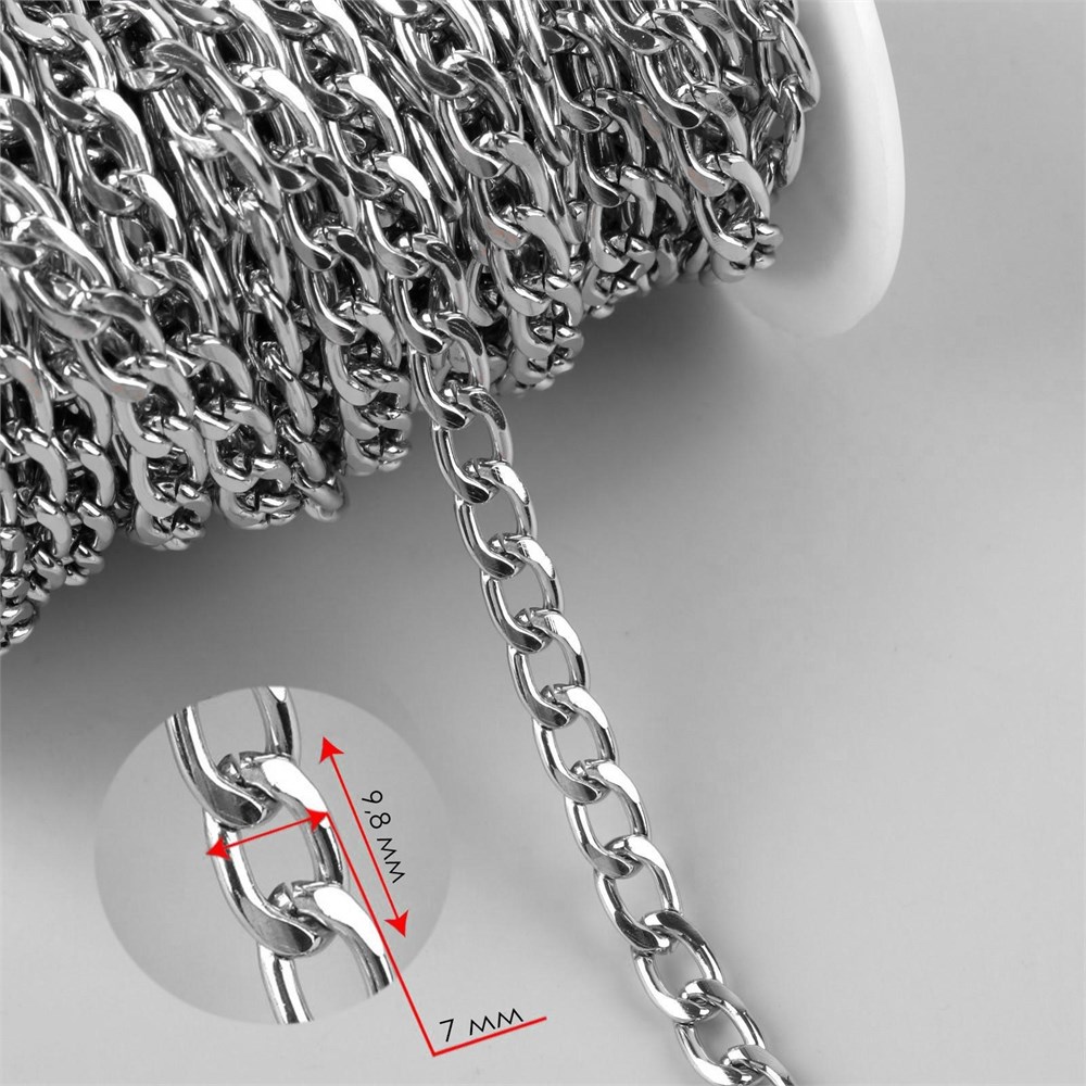 Цепь д/сумки, плоская, алюминиевая, 7*9,8мм, 1м, цвет серебро