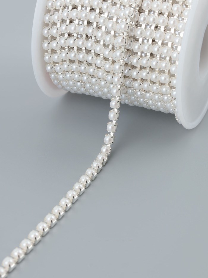 Цепь с жемчугом, металл, пластик, 3.5мм, 1м, цв серебряный