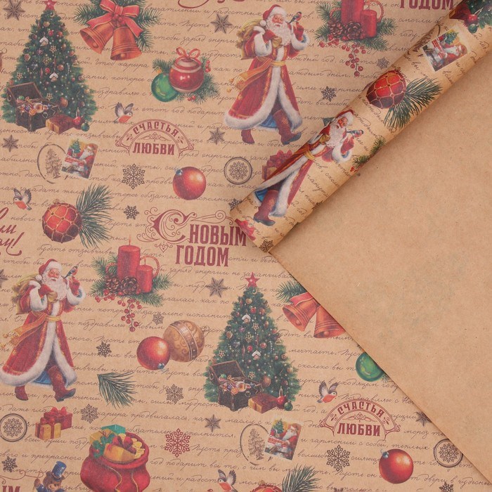 Упаковочная бумага на Новый год крафтовая «Новогоднее настроение», 70*100см