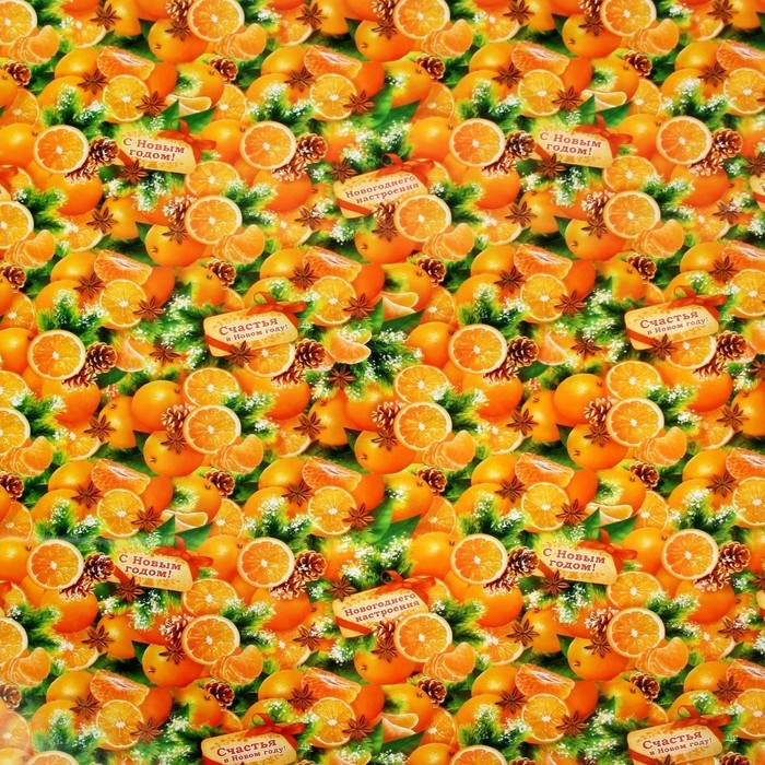 Упаковочная бумага на новый год «Мандарины», 70*100см, глянцевая