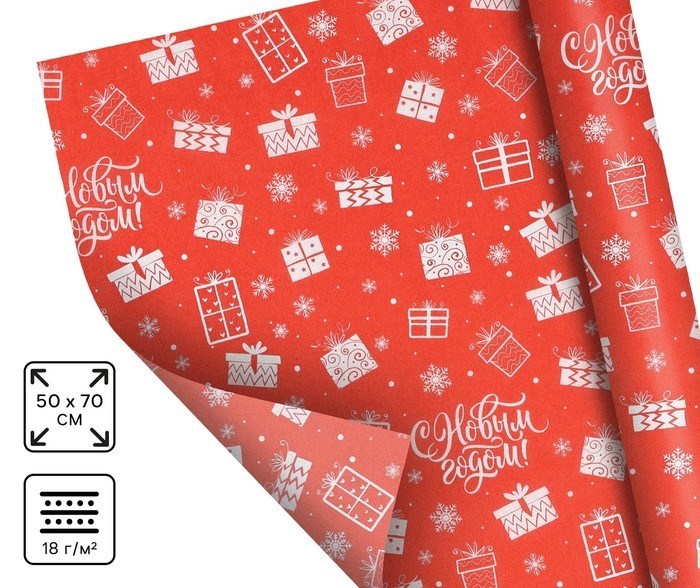 Упаковочная бумага на Новый год тишью «Подарок», 50*70см