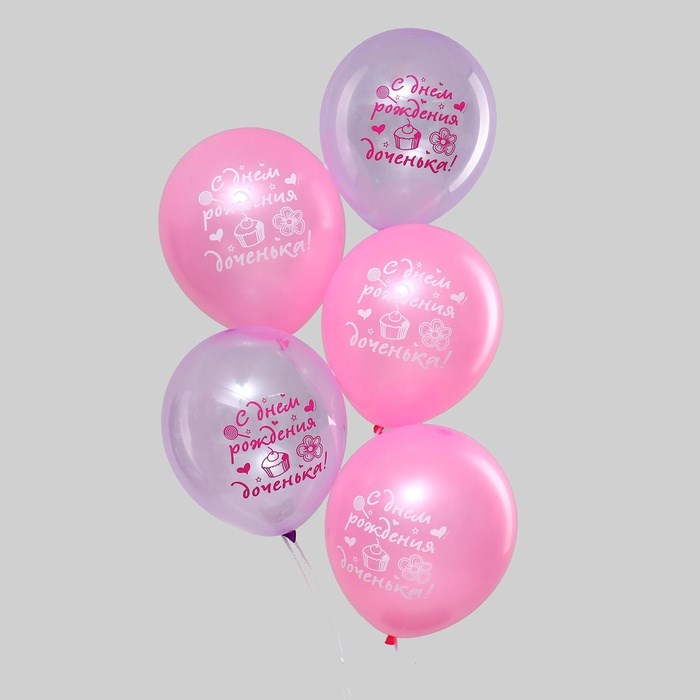 Воздушные шары латексные 12" «С днем рождения, доченька», 5шт, кристалл
