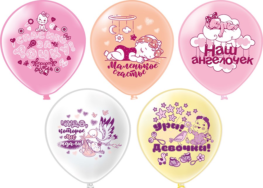 Воздушные шары «Новорожденные. Девочка» 12" н-р 5шт