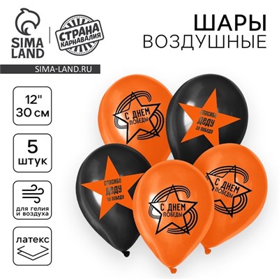 Воздушный шар латексный на 9 мая 12" «С Днём Победы», 5шт