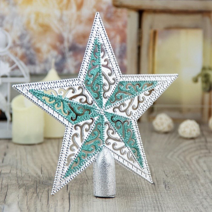 Звезда на ёлку (верхушка) завитушки, 19*18.5см, серебристо-зелёный